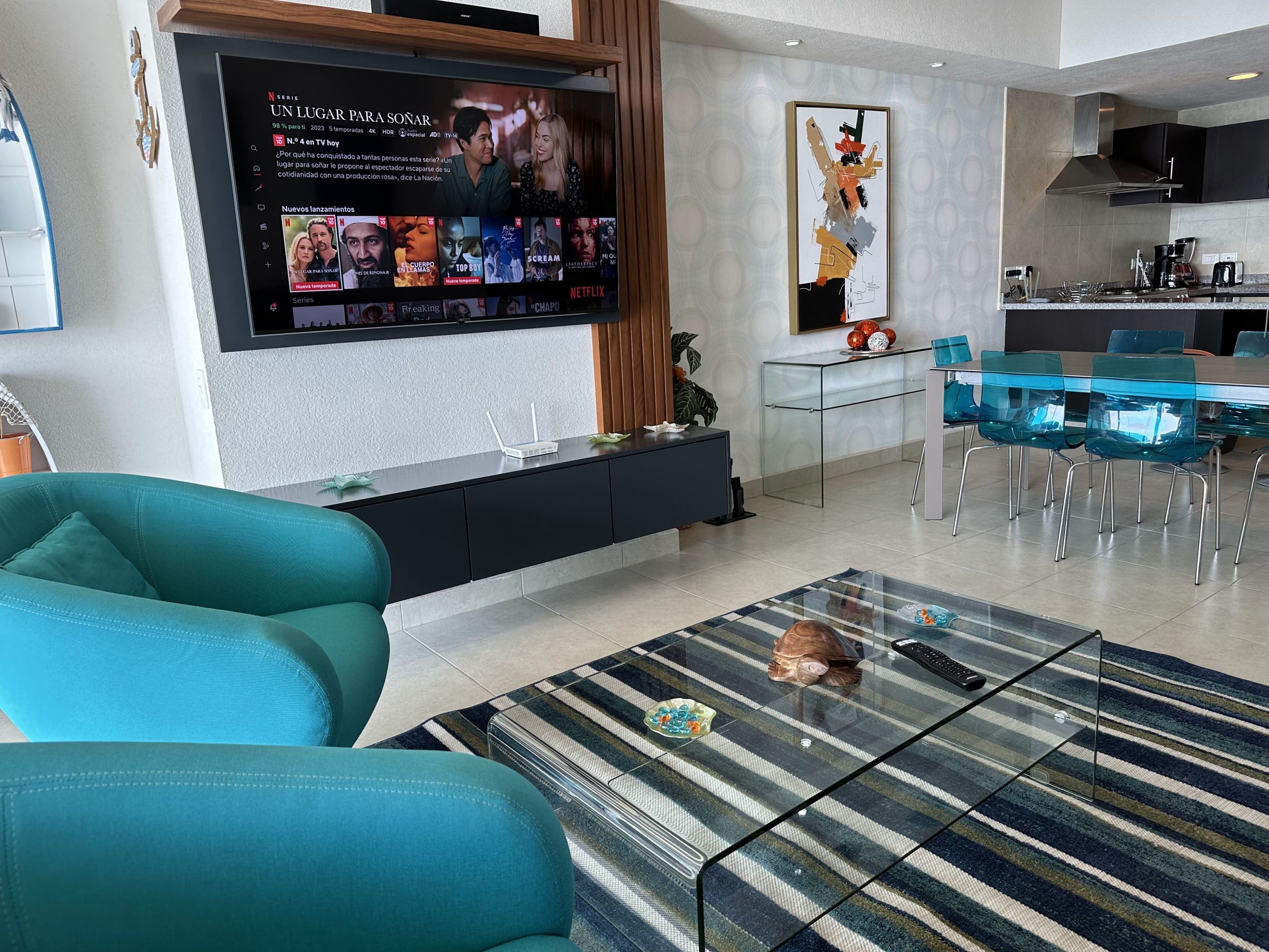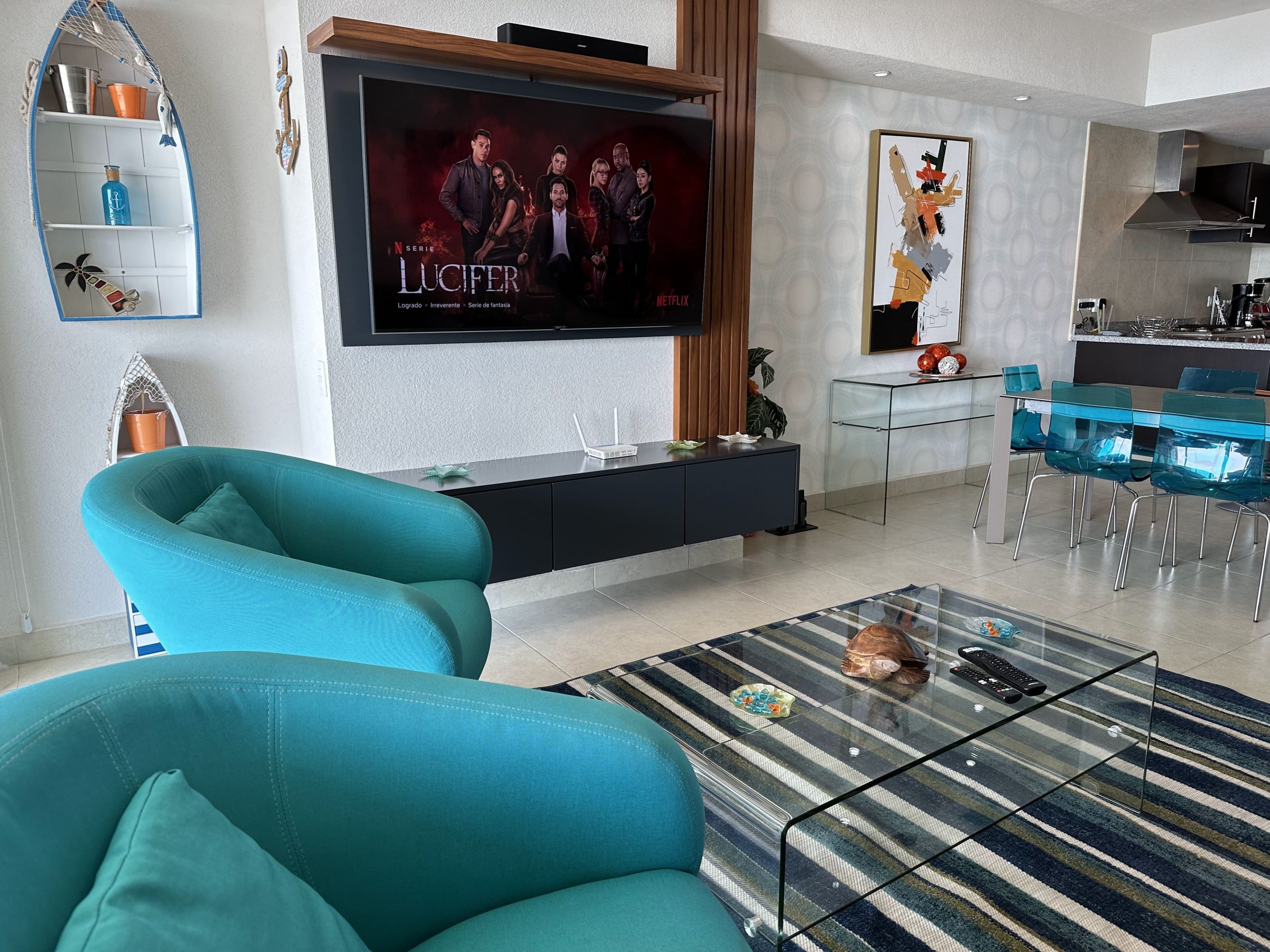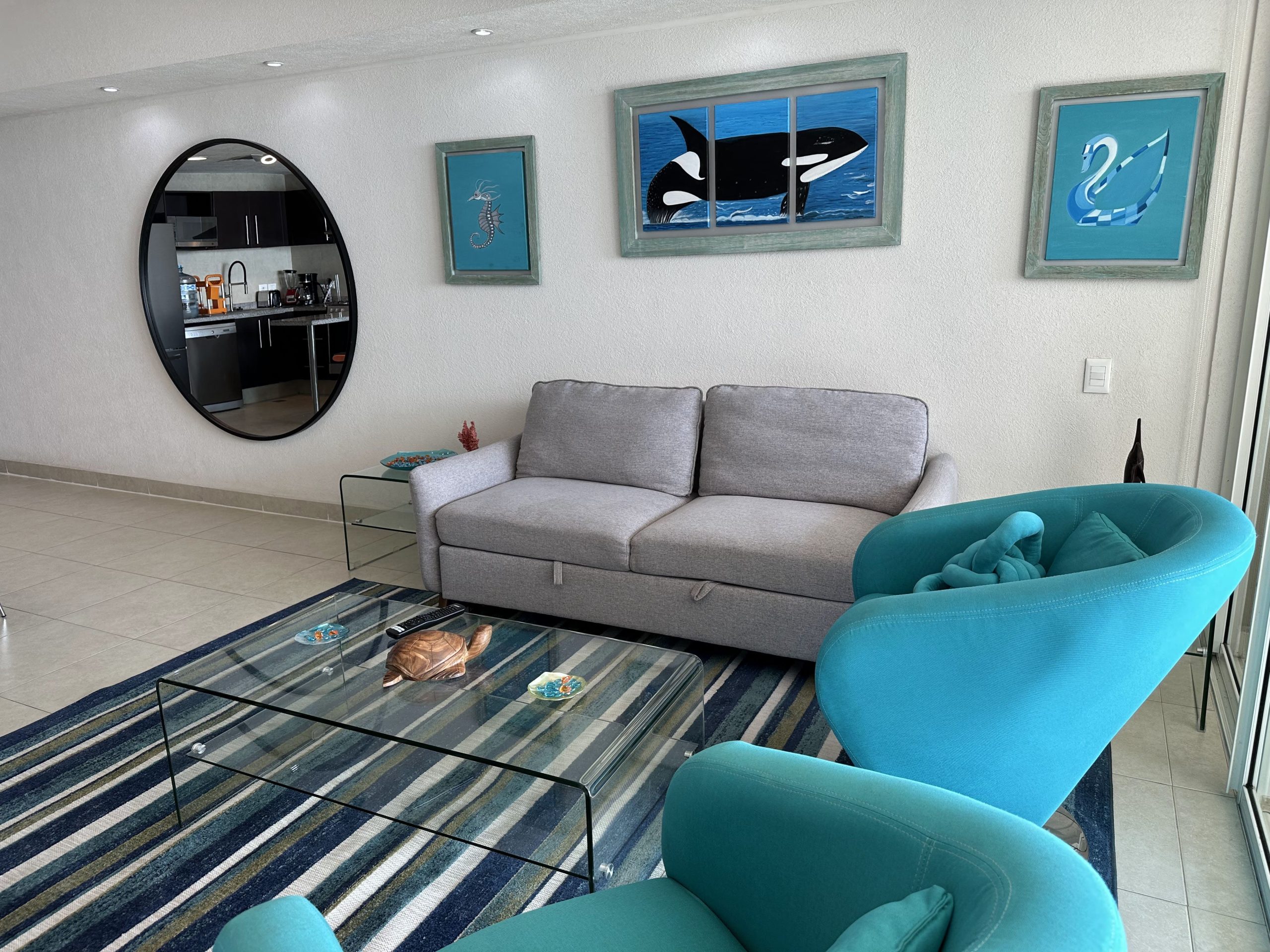 •Living Room: Two comfortable sofas and a flat-screen TV for your entertainment. One of the sofas converts into a sofa bed for extra flexibility.